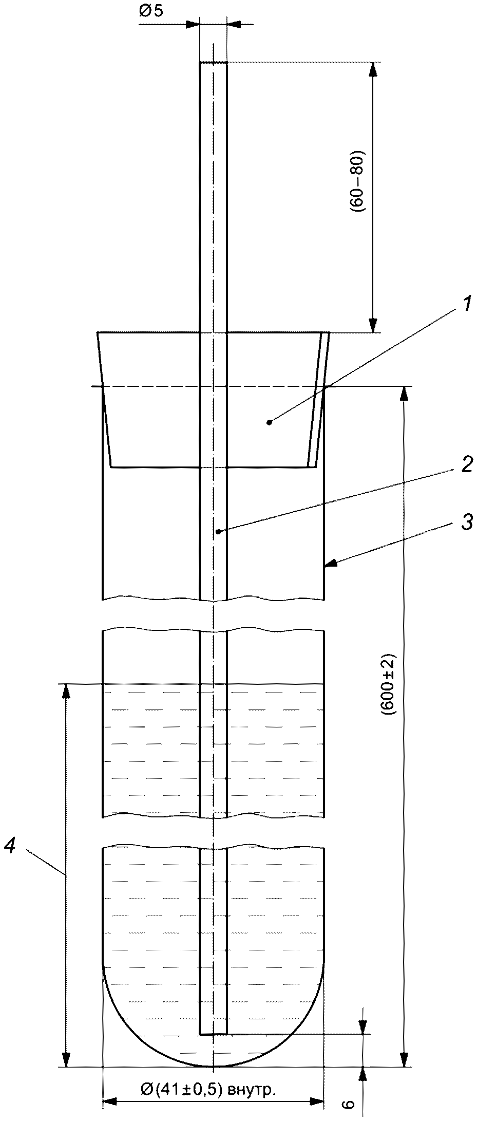 6.1 Окислительная ячейка, состоящая из большой пробирки из боросиликатного стекла высотой 600 мм, внутренним диаметром (41,0 +/- 0,5) мм с делением (300 +/- 1) см