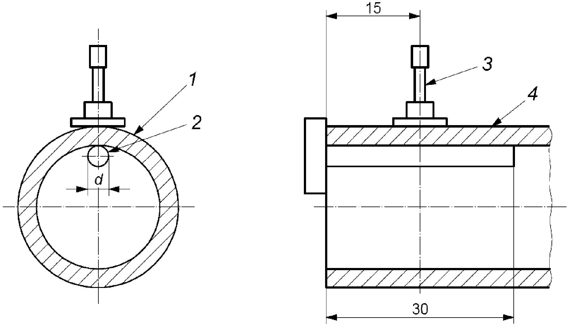 шток; 4 - рукав длиной не менее 30 мм d = 3 мм для рукавов