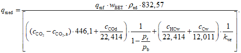 Для частичнопоточной системы разбавления следует учитывать также коэффициент деления потока. Расход углерода определяется по концентрации CO2 в разбавленных газах, массовому расходу отработавших газов и расходу пробы в соответствии с формулой