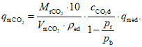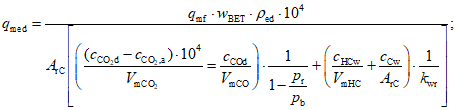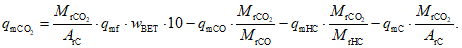Массовый расход углерода в выпускной трубе двигателя определяется по концентрации CO2 в отработавших газах и массовому расходу отработавших газов по формуле