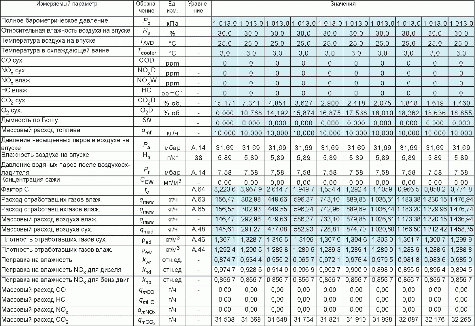 4,0 | Плотн. влаж. ОГ | кг/м3 | 1,237 4 | 1,236 1 | 1,234 8 | 1,233 5 | 1,232 2 | 1,230 9 | 1,230 5 | 1,229 6 |