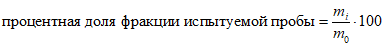 7.1 Определяют гранулометрический состав, вычисляя процентную долю фракции испытуемой пробы, оставшейся на каждом сите, по формуле