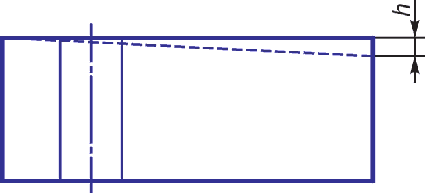 30 скошенность огнеупорного изделия; скошенность | Дефект огнеупорного изделия в форме тела вращения или призмы в виде отклонения угла между торцевой поверхностью и горизонтальной осью изделия от прямого угла | |