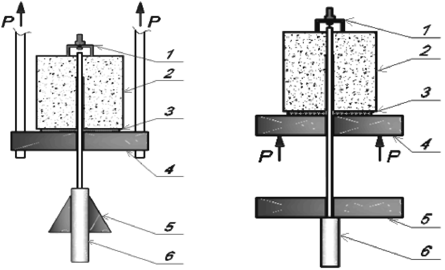 1 - подвижная траверса испытательной машины; 2 - верхняя