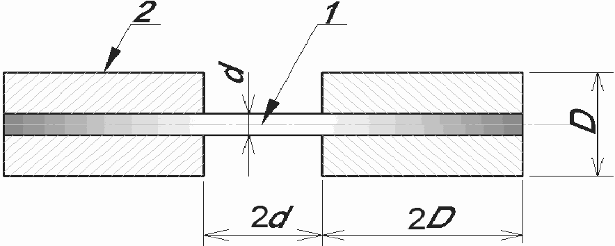 5.2.1 Длину испытательных муфт следует принимать из условий, чтобы разрыв образца происходил в пределах длины рабочего участка без проскальзывания и разрушения в них.