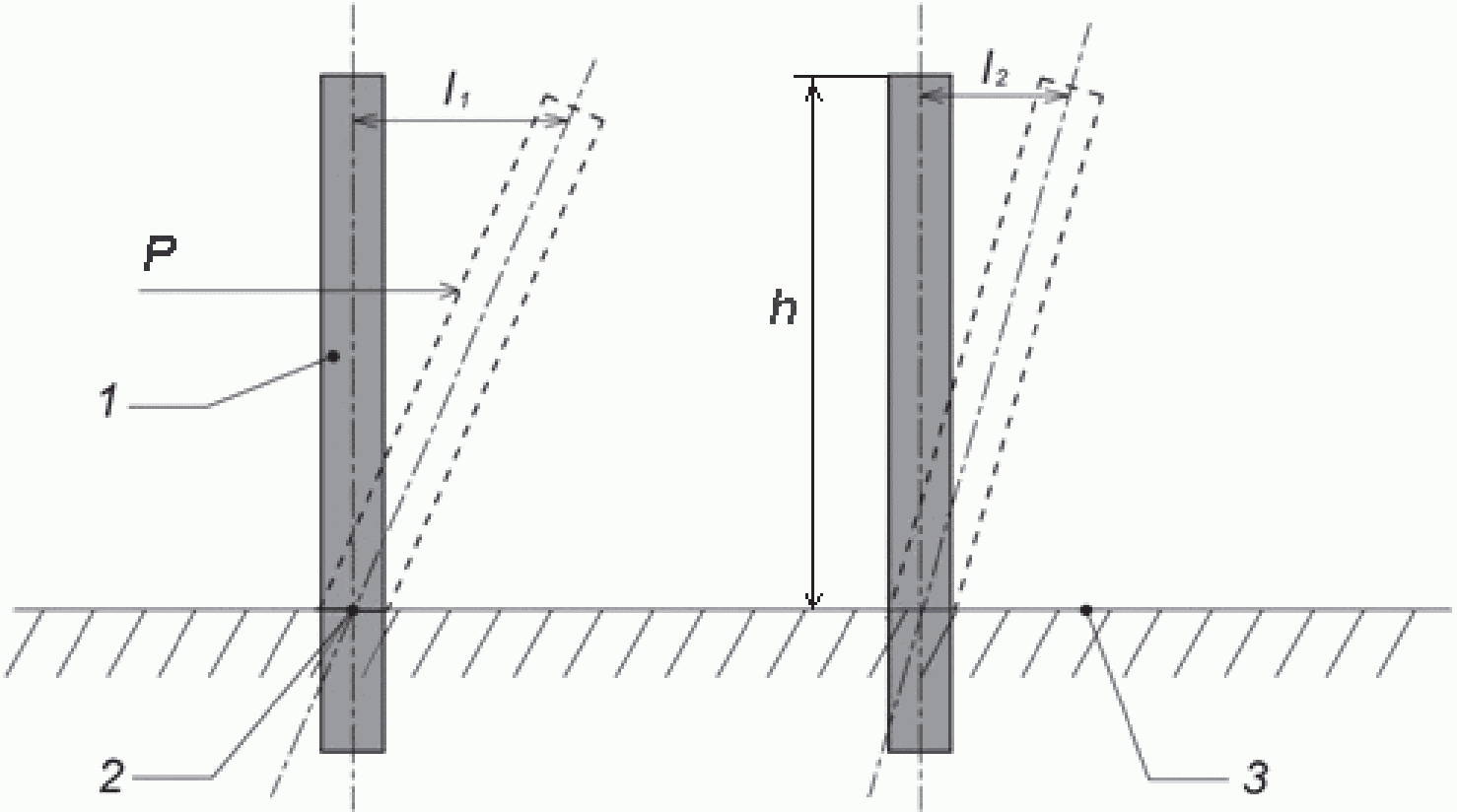 4.4.1.1 Проведение измерений направлено на определение временного и остаточного отклонения тестовых образцов столбиков типов С2 и С3 от вертикального положения под воздействием статической нагрузки.