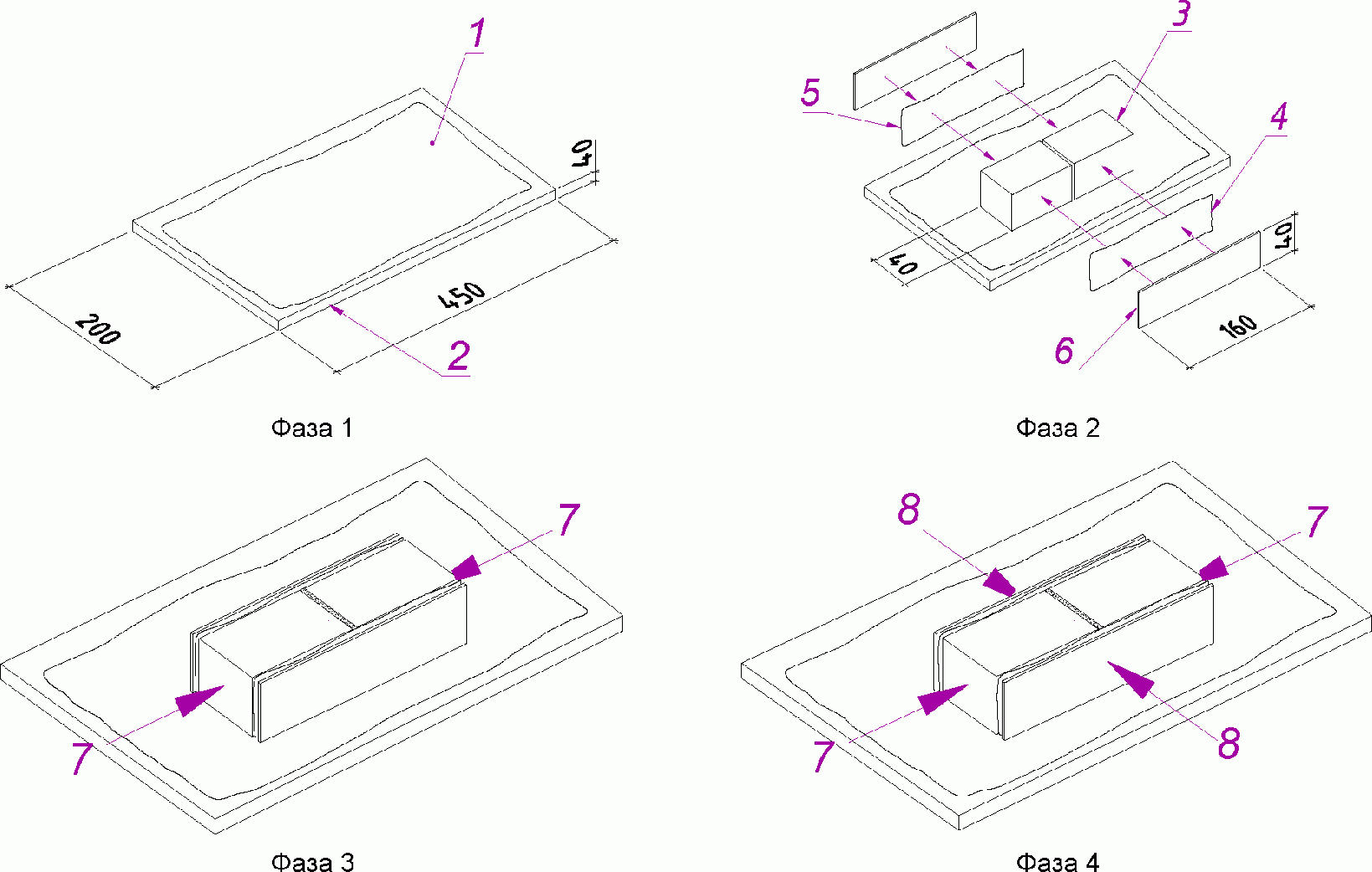 Д.3.2. Нагнетание завершают, когда клеящий состав появится в неуплотненной части зазора (предназначенной для выхода воздуха) на верхней грани заготовки сборного образца-плиты.
