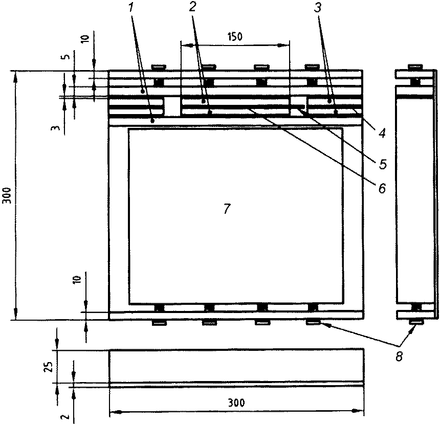 Д.1.1, задавая значения величины зазора между плитами в пределах (1 +/- 0,3) мм, если не требуется другое, с помощью прокладок и контролируя штангенциркулем по