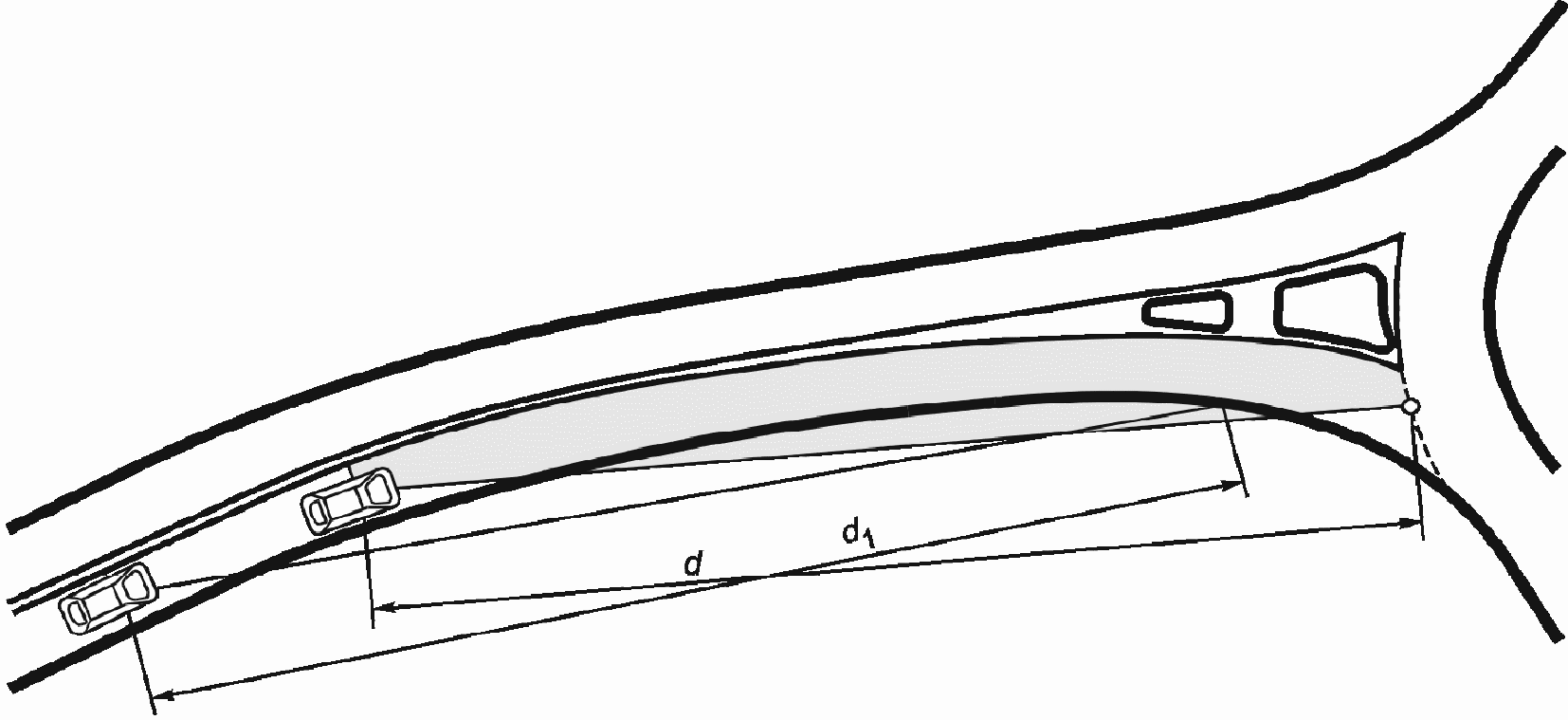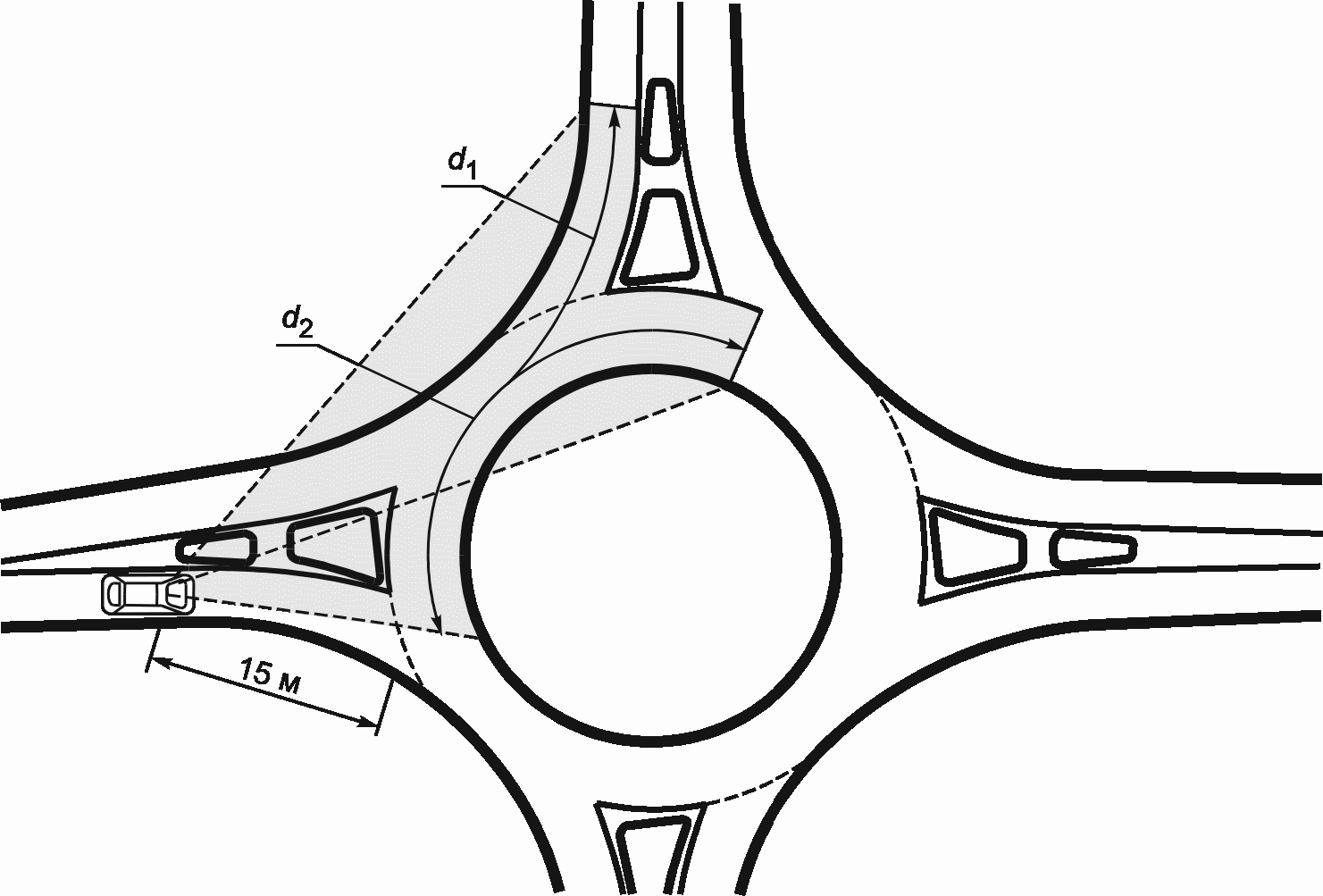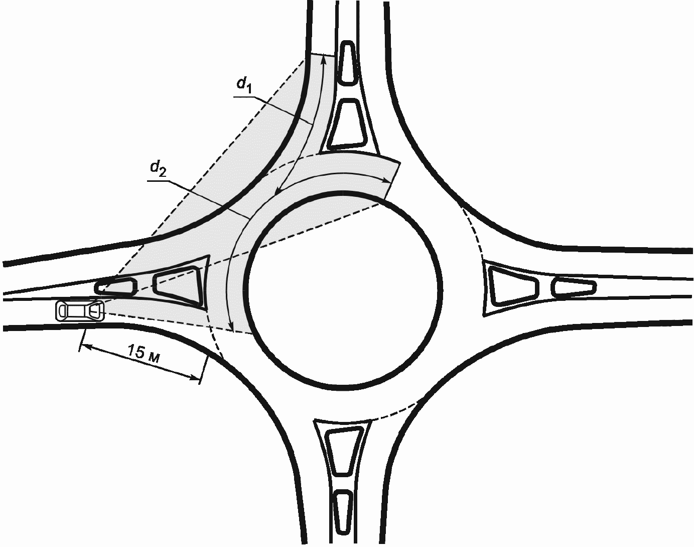 d1 - расстояние видимости на въезде на кольцевое