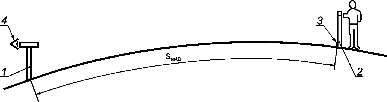 рисунке 2 и в соответствии с 7.2.1, в точке, соответствующей границе видимости объекта наблюдателем. Точки установки вешек в створе отмечают на дорожном покрытии хорошо видимыми метками, например, краской или мелом и подписывают цифрами с указанием номера створа.