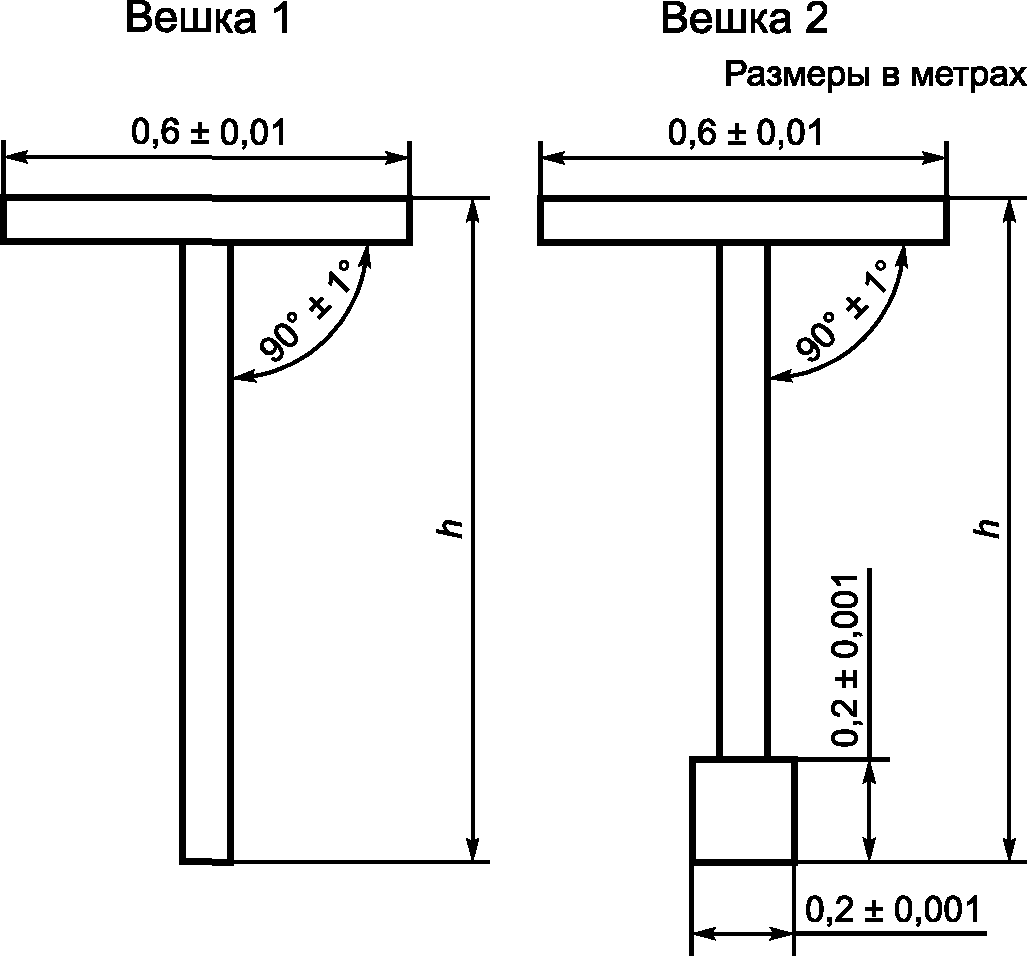 Высоту вешек h принимают в соответствии с национальными стандартами, действующими в странах Таможенного союза. Рекомендуемая высота вешек - 1 м.