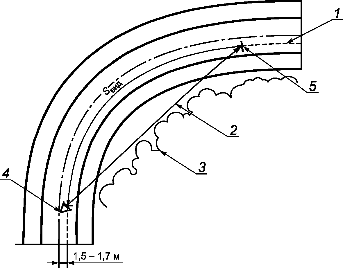 7.8.3 Измерение расстояния видимости на кривых в плане выполняют в соответствии с