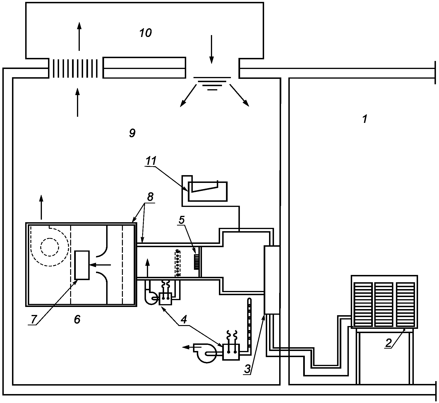 рисунок П.1) и за измерительными приборами измерения температуры по сухому термометру и количества водяного пара, находящимися на выходе оборудования.