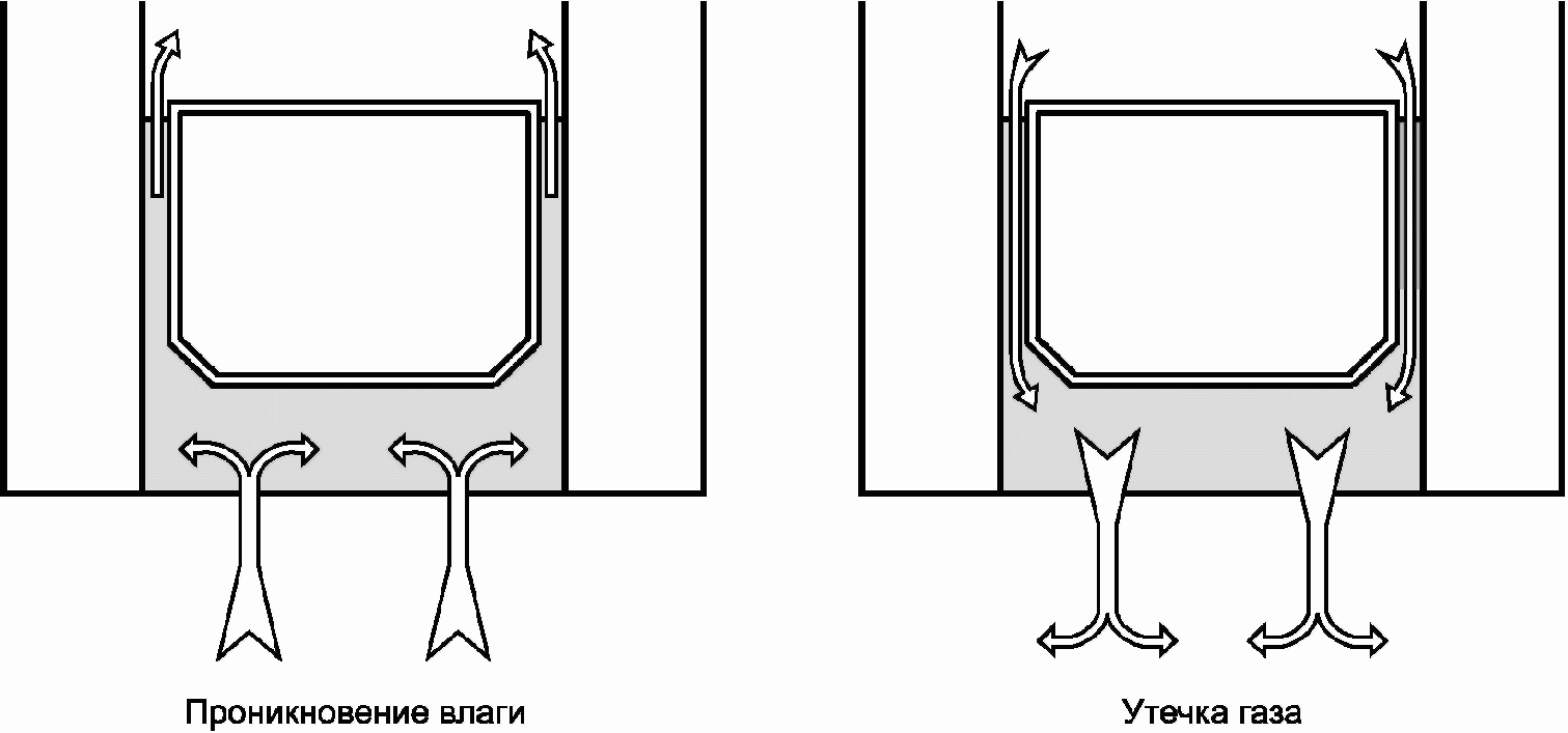 Примечание. Для систем TPS-типа проникновение происходит сквозь систему в большей степени, чем через дистанционную рамку и герметизирующий слой.