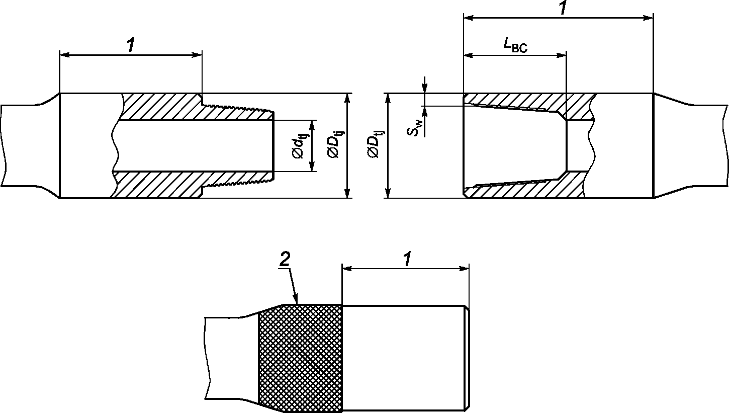 3.12 высаженный конец трубы (upset): Кованый конец бурильной трубы, используемый для повышения толщины стенки.