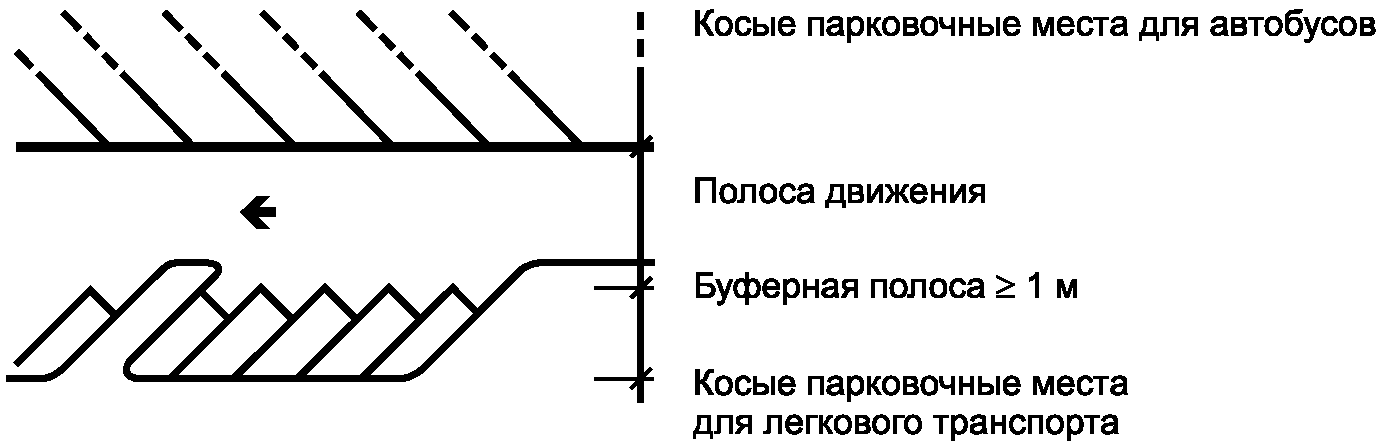 автомобили с прицепами (продольная парковка); 6 - легковые