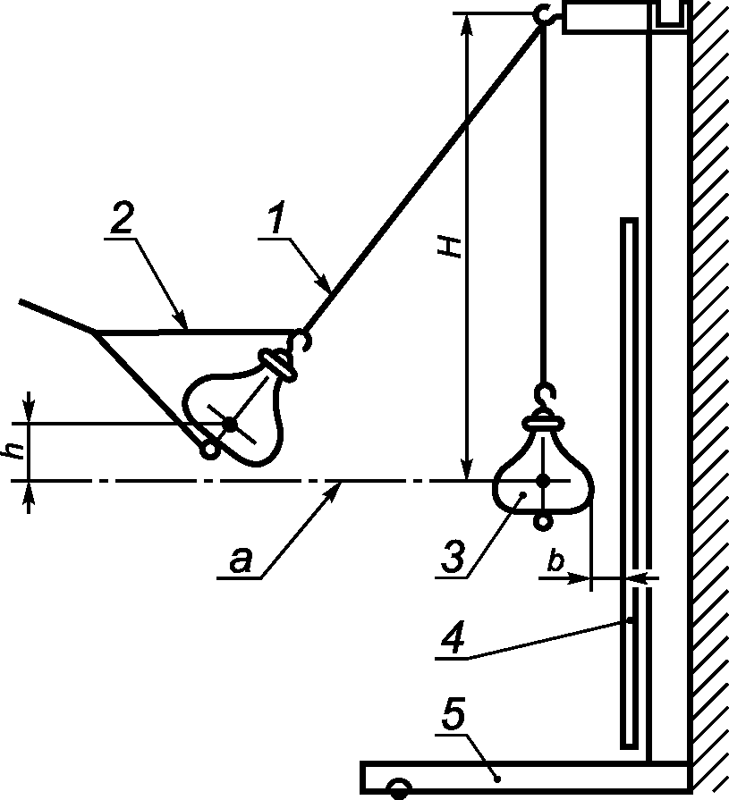 4 - испытуемый образец; 5 - опора; H - высота подвеса;