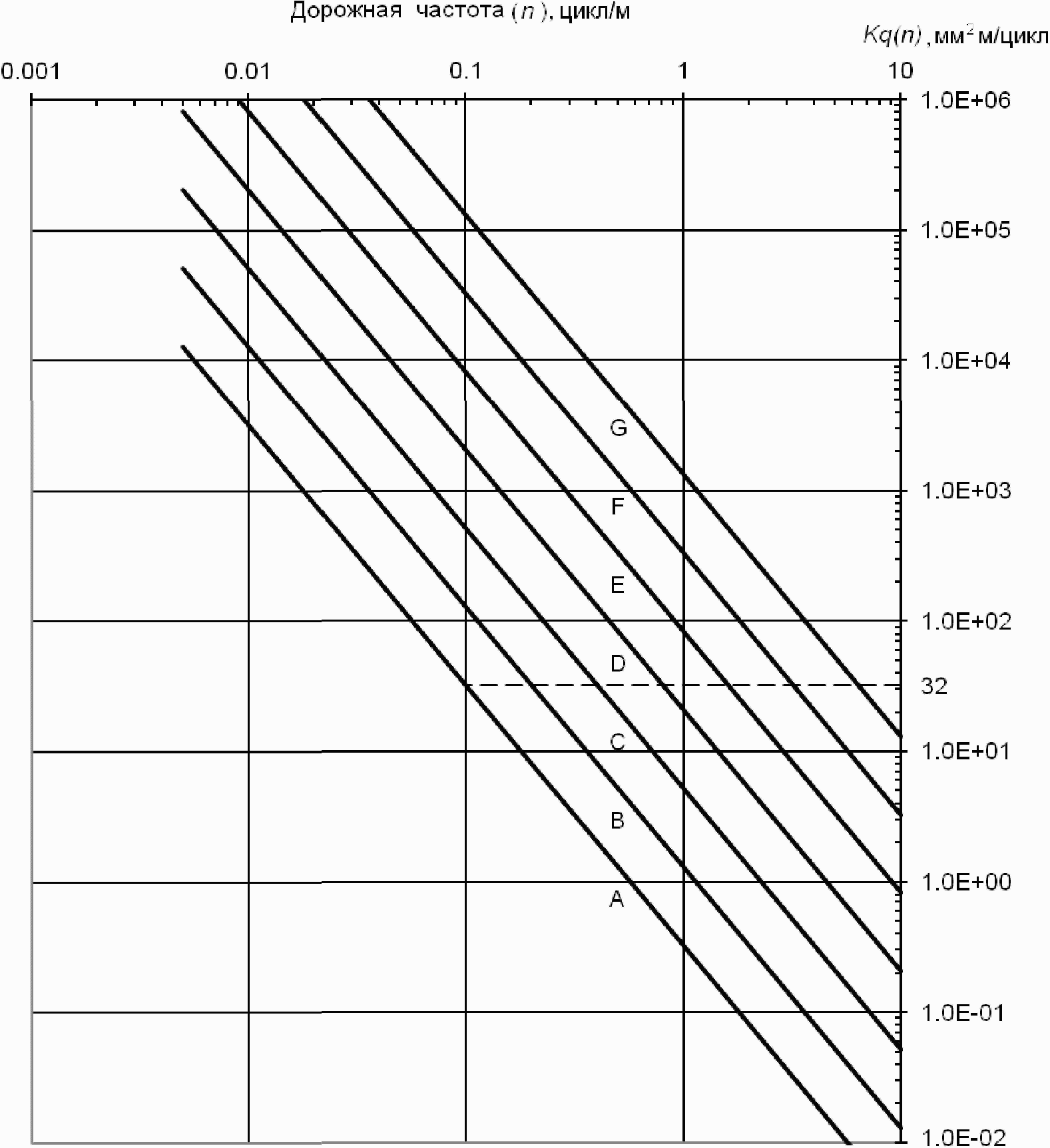 n0 - базовая частота дорожных неровностей, равная 0,1 цикл/м, при длине волны неровностей 10 м, цикл/м;