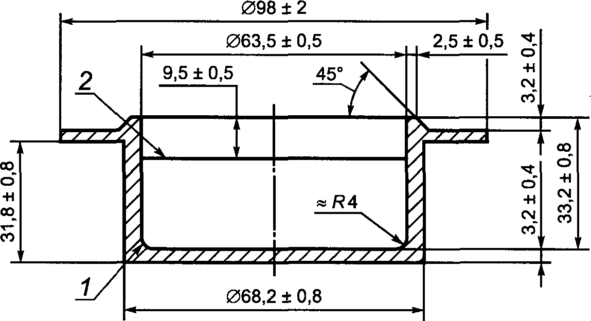 - тигель заполняют битумом таким образом, чтобы верхний мениск точно совпадал с меткой. При наполнении тигля выше метки избыток битума удаляют пипеткой или другим соответствующим приспособлением. Удаляют пузырьки воздуха с поверхности пробы. Не допускается смачивание стенок тигля выше уровня жидкости.