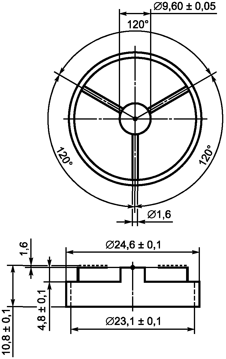 А.4 (приложение А), расстояние между которыми составляет (25,0 +/- 0,4) мм;