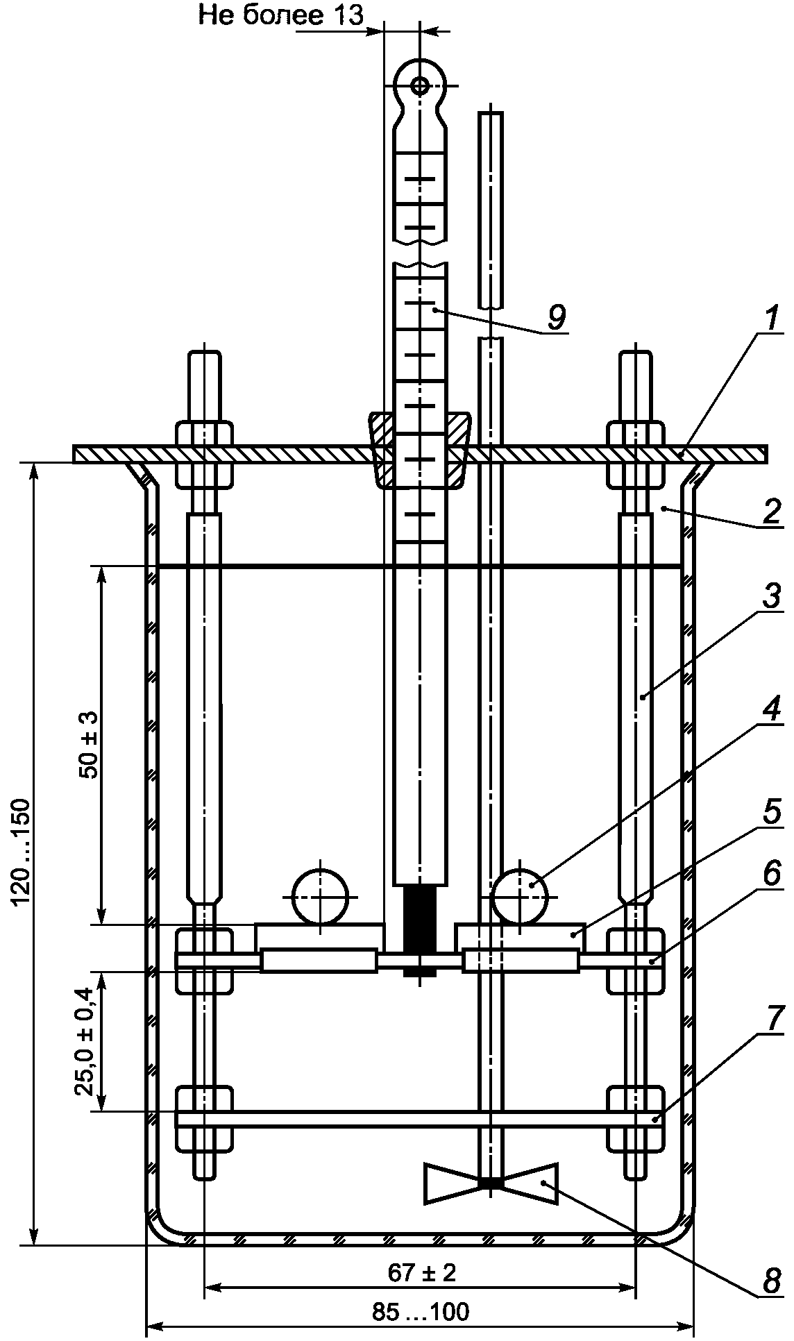 пластина; 8 - мешалка пропеллерная; 9 - термометр