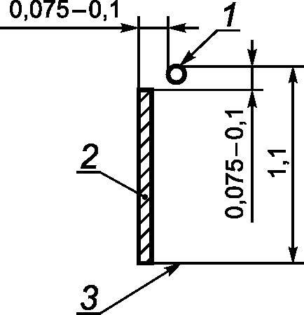 5.8.3.2 Поручень должен располагаться на расстоянии от 0,075 до 0,1 м от бокового ограждения по горизонтали и на расстоянии от 0,075 до 0,1 м выше верхней кромки бокового ограждения (рисунок 5).