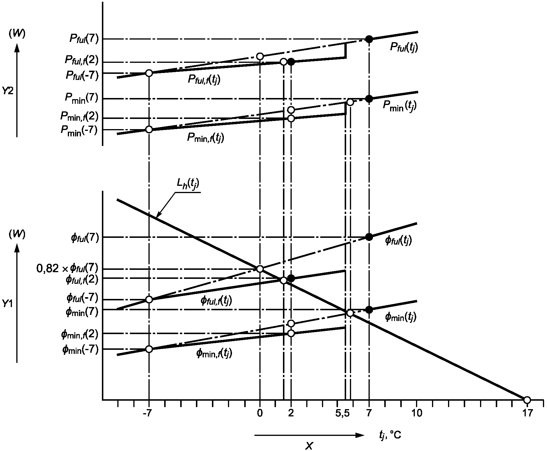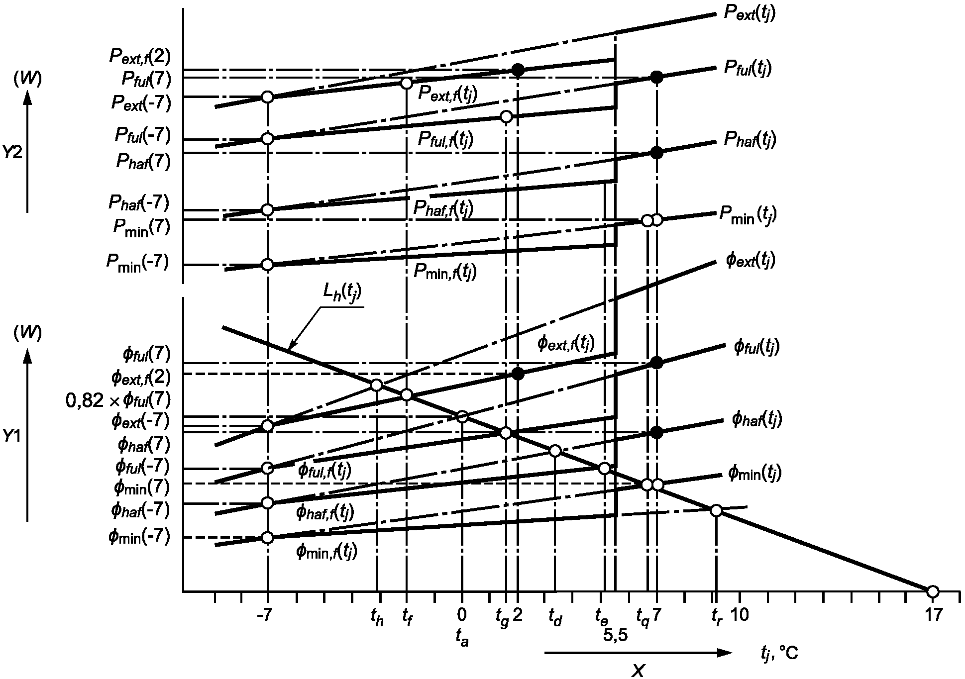 Характеристики оборудования при определенной температуре наружного воздуха относительно теплопроизводительности и потребляемой мощности получают из основной части настоящего стандарта.
