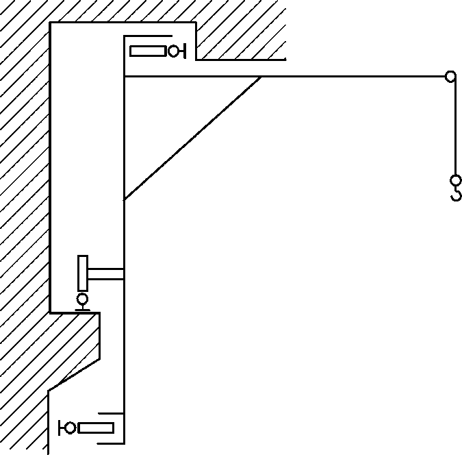 1.1.3.9.2 Кран настенный (E) Wall crane | Кран консольный, прикрепленный к стене либо перемещающийся по надземному крановому пути, закрепленному на стене или несущей конструкции | ![]() |