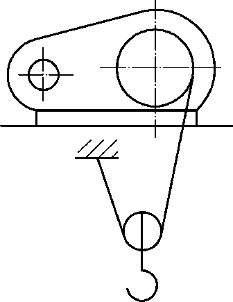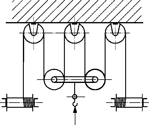 4.35.1 Полиспаст сдвоенный (E)* | Полиспаст, оба конца каната (цепи) которого закреплены на одном или двух барабанах | ![]() |