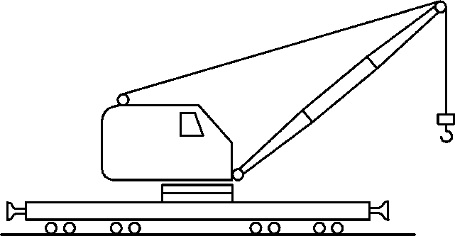 (E) Railway crane | Кран стрелового типа, смонтированный на железнодорожной платформе, передвигающейся по железнодорожному пути | ![]() |