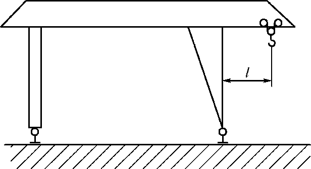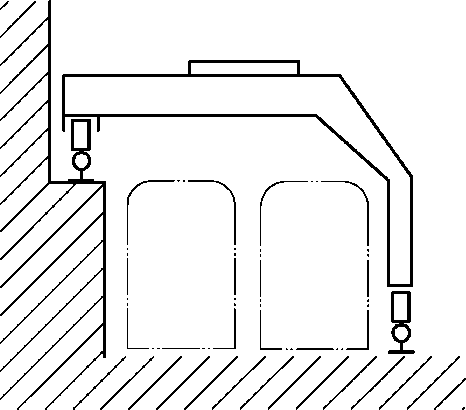 1.1.1.3 Кран полукозловой (E) Semi-portal bridge crane | Кран мостового типа, мост которого опирается непосредственно на крановый путь с одной стороны, а с другой - с помощью опорной стойки | ![]() |