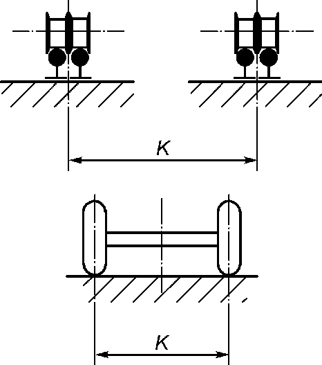 2.4.3 Колея крана K (E) Track centers | Расстояние по горизонтали между осями рельсов или колее (гусениц) ходовой части крана | ![]() |