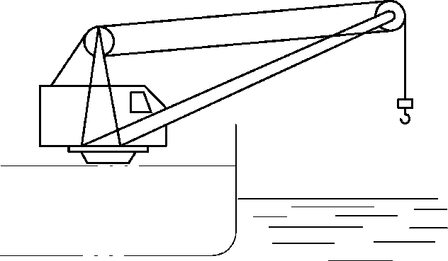 1.1.3.7 Кран стреловой судовой (E) Deck crane | Кран стрелового типа поворотный, установленный на борту судна и предназначенный для его загрузки и разгрузки | ![]() |