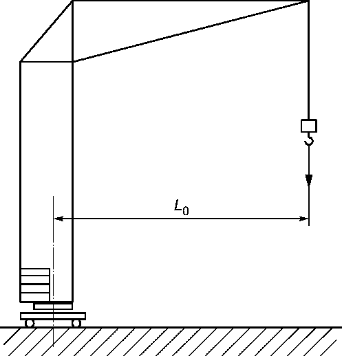 2.2.1.1 Вылет проектный (ссылочный) L0 (E)* | Расстояние по горизонтали от оси вращения поворотной части до вертикальной оси грузозахватного органа без нагрузки при установке крана на горизонтальной площадке | ![]() |