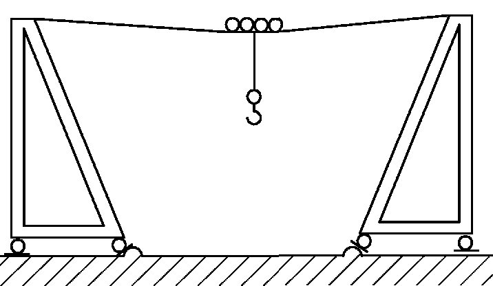 1.1.1.2 Кран козловой (E) Portal bridge crane | Кран мостового типа, мост которого опирается на крановый путь или пневмоколесный ход с помощью двух опорных стоек | ![]() |