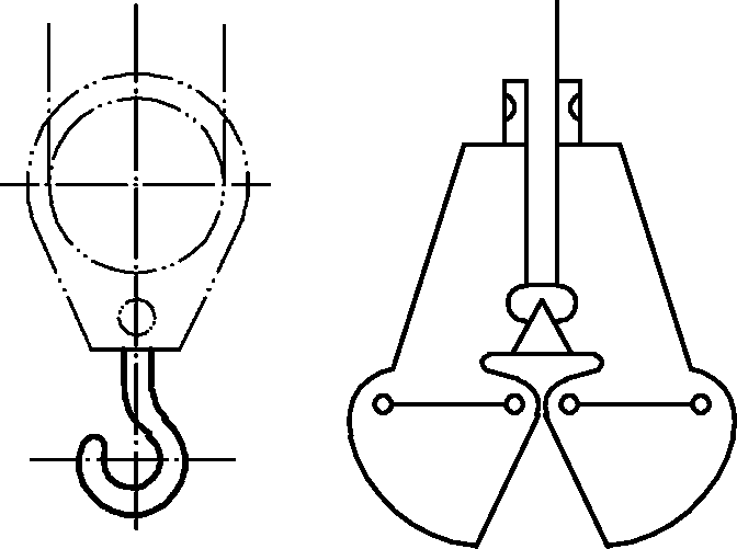 4.36 Подвеска крюковая блочная (E) Hook assembly | Устройство, состоящее из грузового крюка, траверсы и блоков (звездочек) для подвески на канатах (цепях) полиспаста | ![]() |