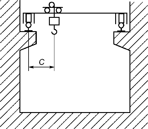 2.2.4 Подход C (E) Hook approach | Минимальное расстояние по горизонтали от оси кранового рельса до вертикальной оси грузозахватного органа | ![]() |