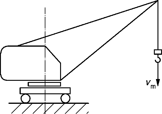 2.3.6 Скорость изменения вылета Vr (E) Derricking speed | Средняя скорость горизонтального перемещения груза в установившемся режиме движения. Примечание - Определяется при изменении вылета от наибольшего до наименьшего при установке крана на горизонтальном пути и скорости ветра не более 3 м/с на высоте 10 м. | ![]() |