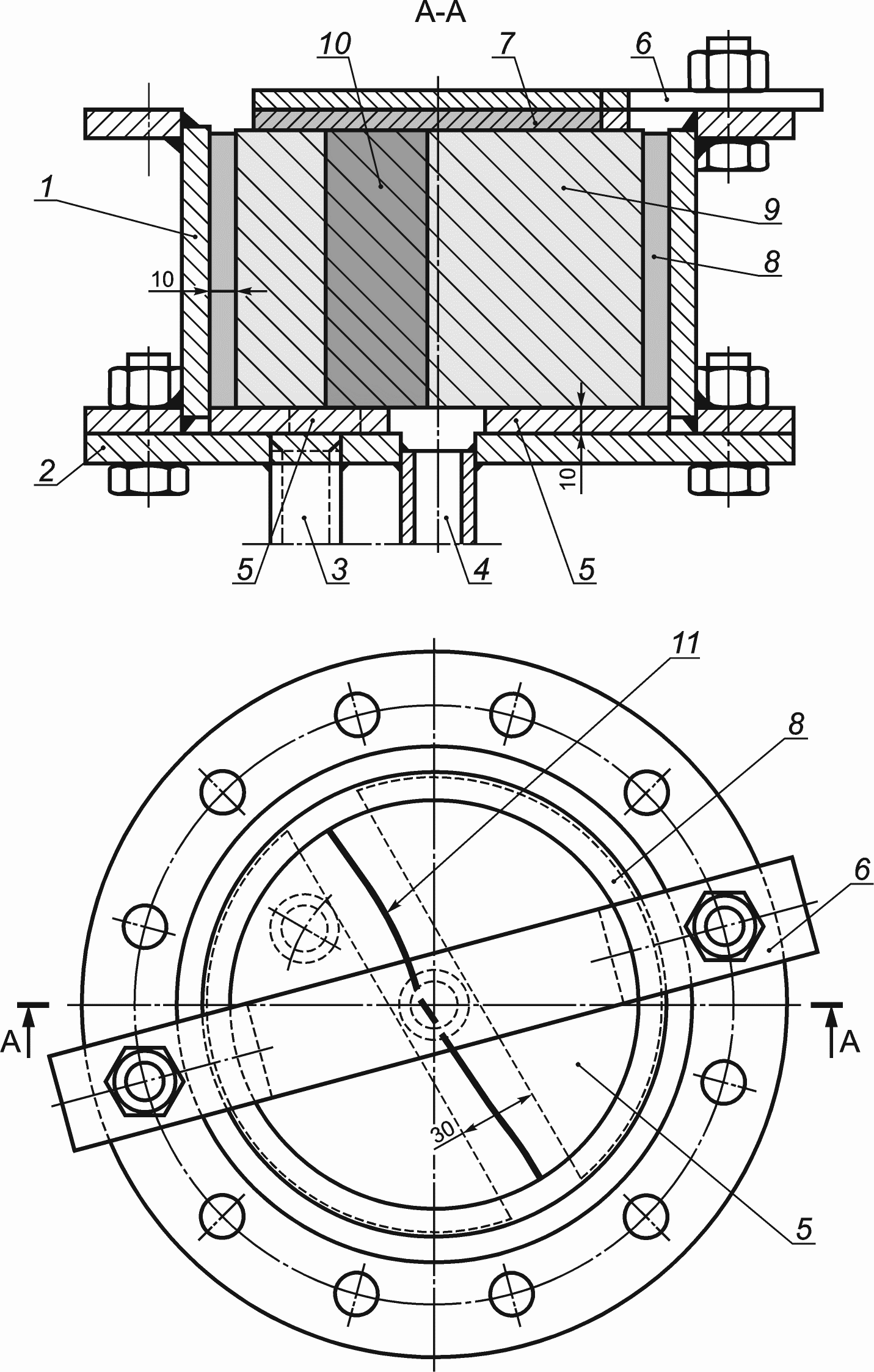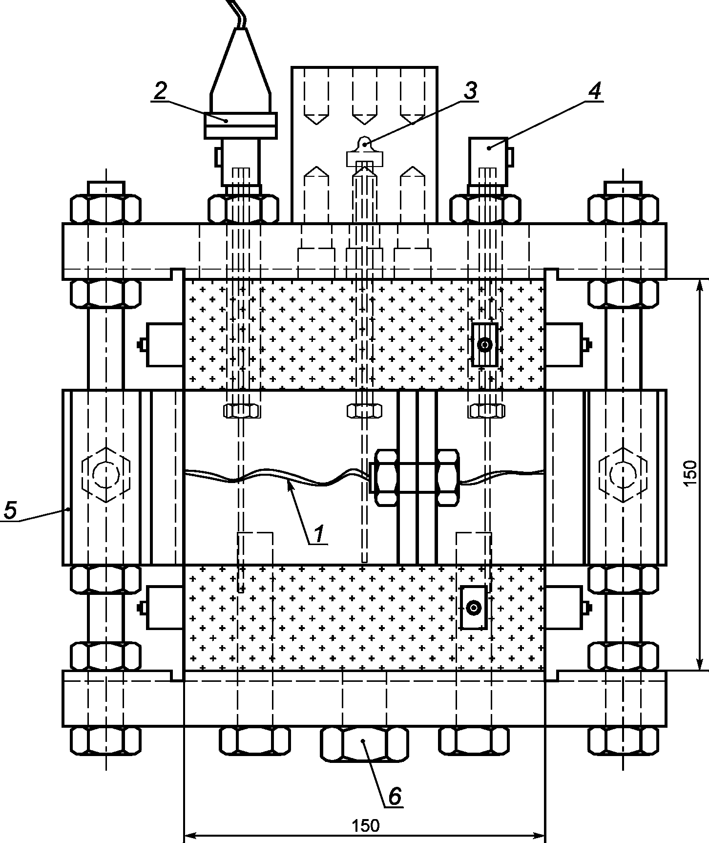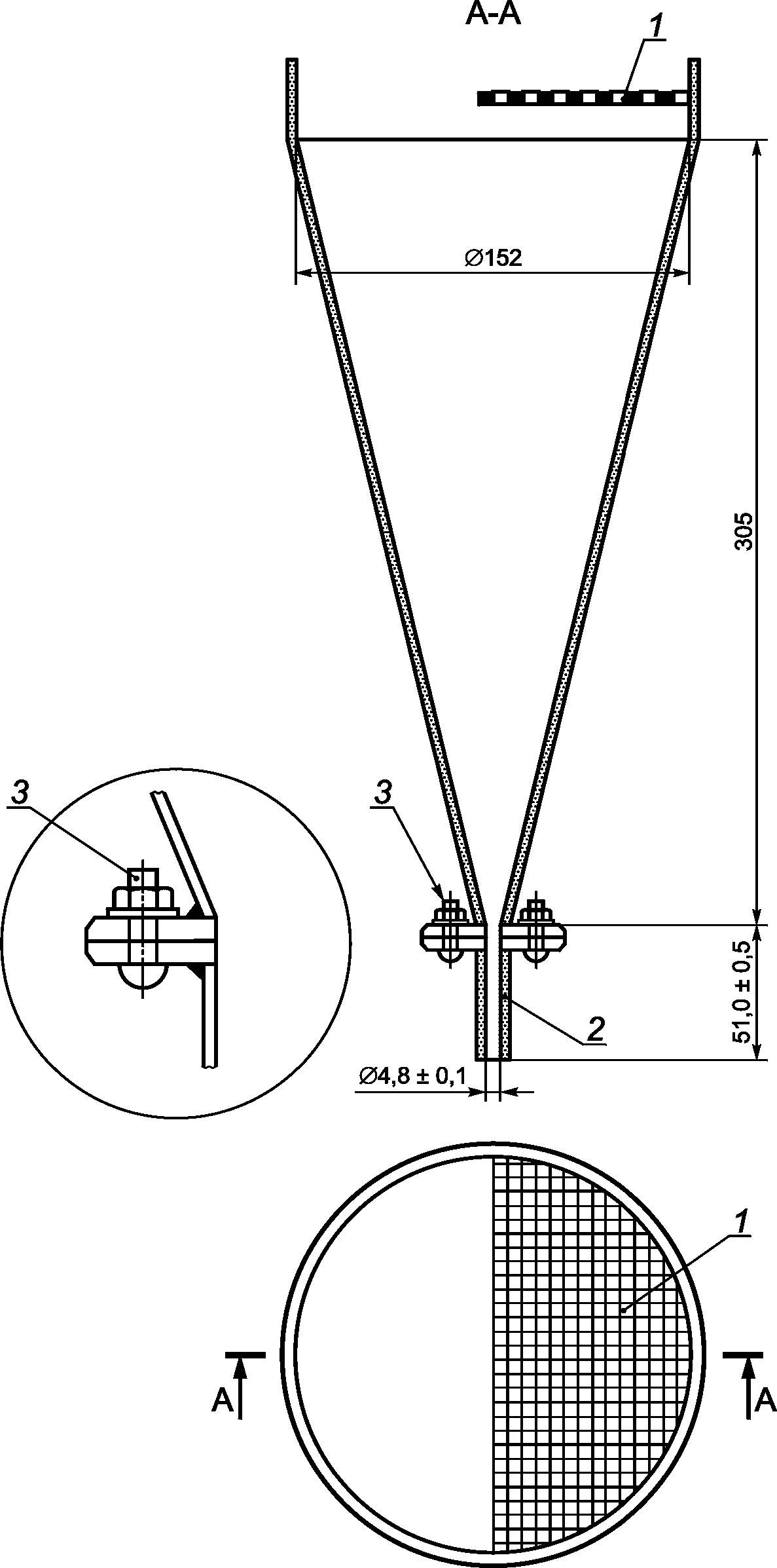 рисунок У.1). Рама состоит из плиты основания и открытой по концам камеры диаметром 150 мм, в которой плотно зажимают образцы с помощью навинченных на болты гаек-барашков. Во время испытания верхнее отверстие камеры плотно закрывают подходящей пробкой.