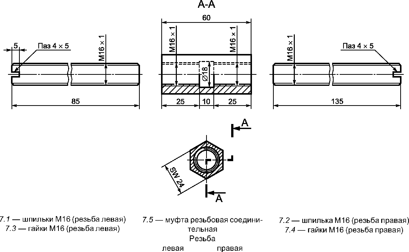 4 - гайка-барашек; 5 - болт; 6 - пробка