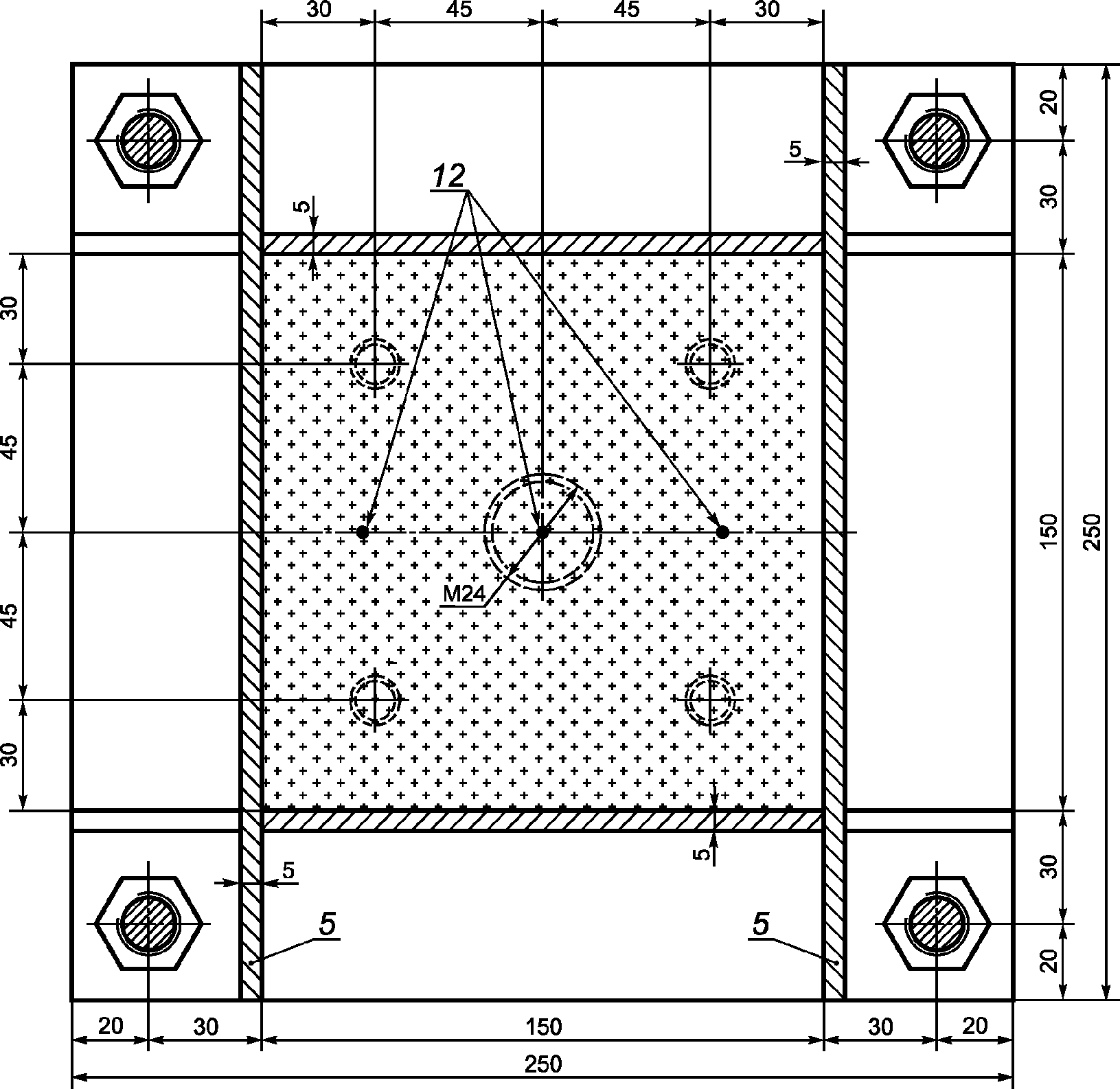 У.3.4.3 Образцы равномерно укладывают на плиту основания и фиксируют гайками-барашками.
