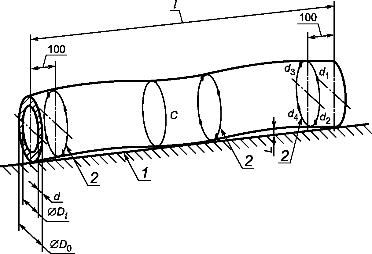 Наружный диаметр D0 измеряют металлической рулеткой или штангенциркулем. Результатом измерений считают среднеарифметическое значение результатов двух измерений, проведенных под прямым углом к продольной оси образца в любых выбранных точках на наружной поверхности изделия <*>.
