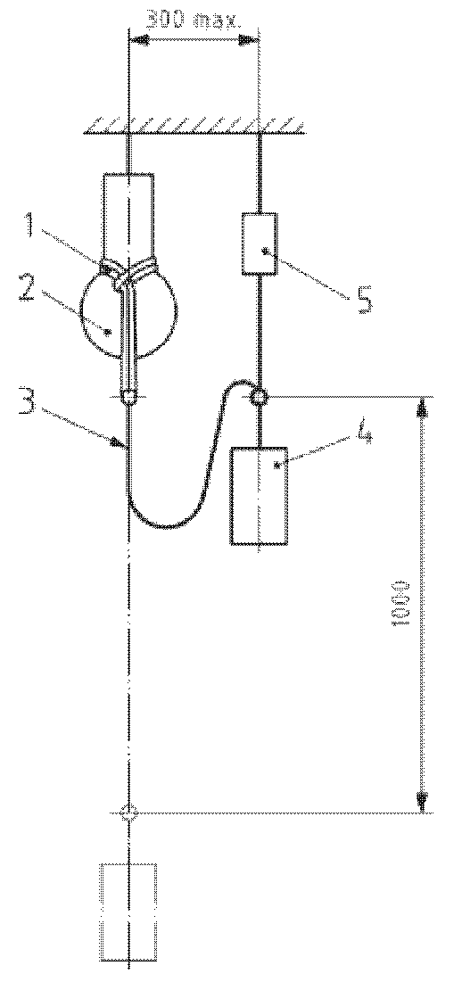 5.2.3.1, но вместо манекена корпуса используют испытательную массу в соответствии с требованиями EN 364 (подраздел 4.5). Схема расположения для этой проверки - см. на