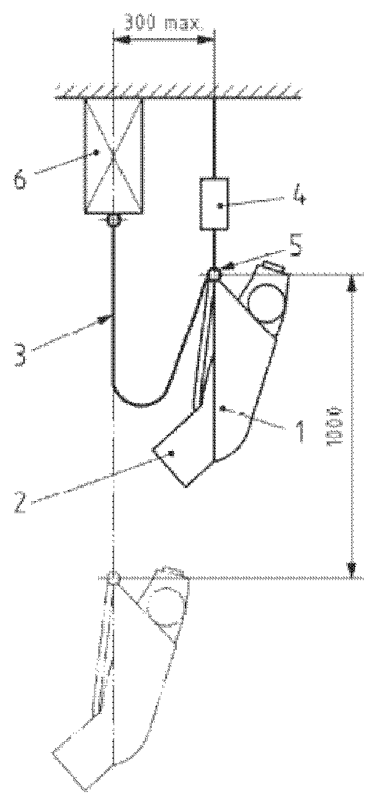 С помощью устройства быстрого расцепления отпускают манекен со спасательной петлей в свободное падение без начальной скорости.