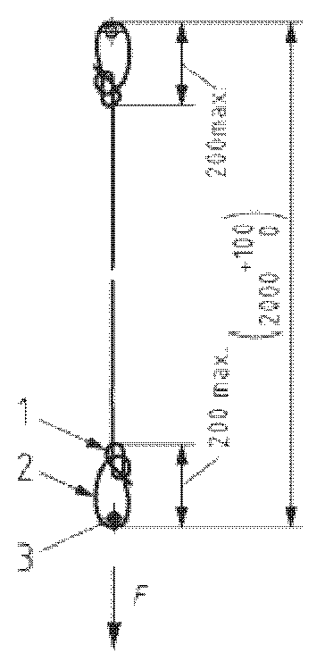 Регулируют длину таким образом, чтобы при нагрузке 100+1 кг длина испытательной стропы, включая петли заделки обоих концов, составляла 2000+100 мм (см. рисунок 6).