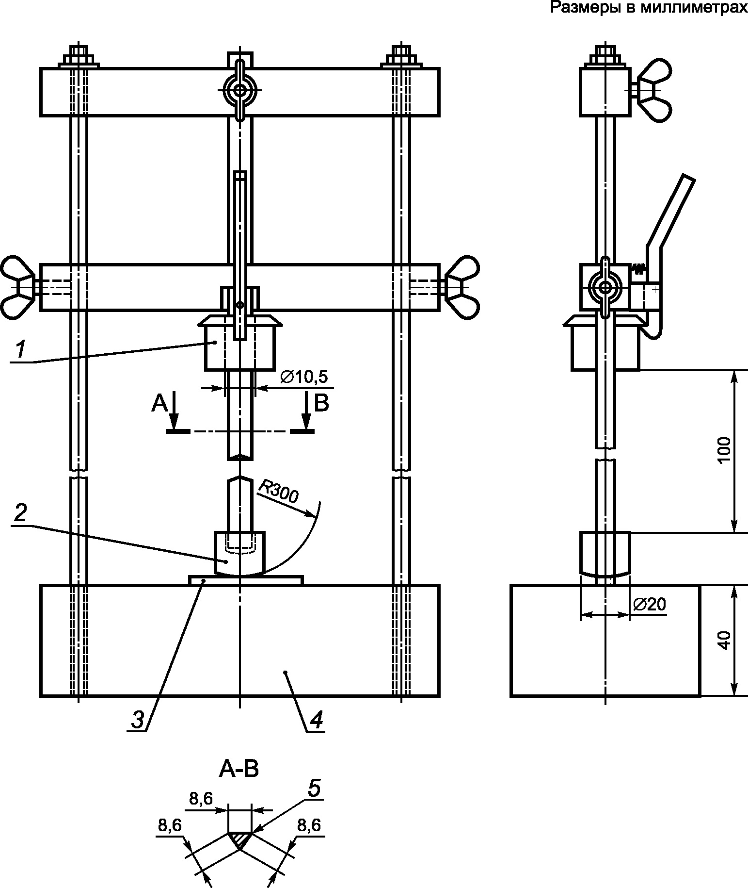 рисунком 1, ударнику обеспечивают возможность падения с высоты 100 мм.