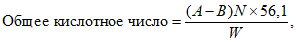 Общее кислотное число в миллиграммах KOH на грамм рассчитывают по следующей формуле: