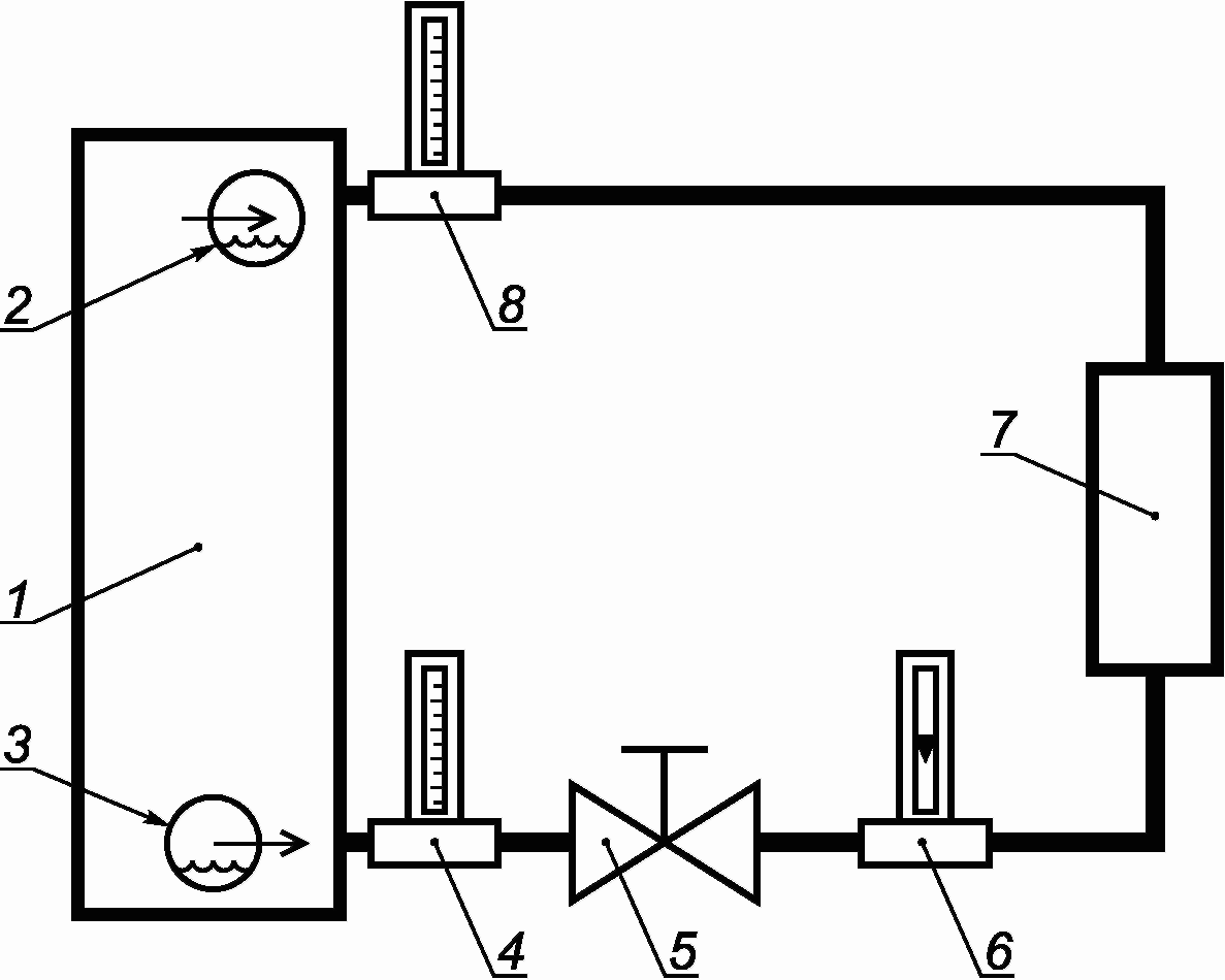 (T2); 5 - регулируемый клапан; 6 - расходомер;