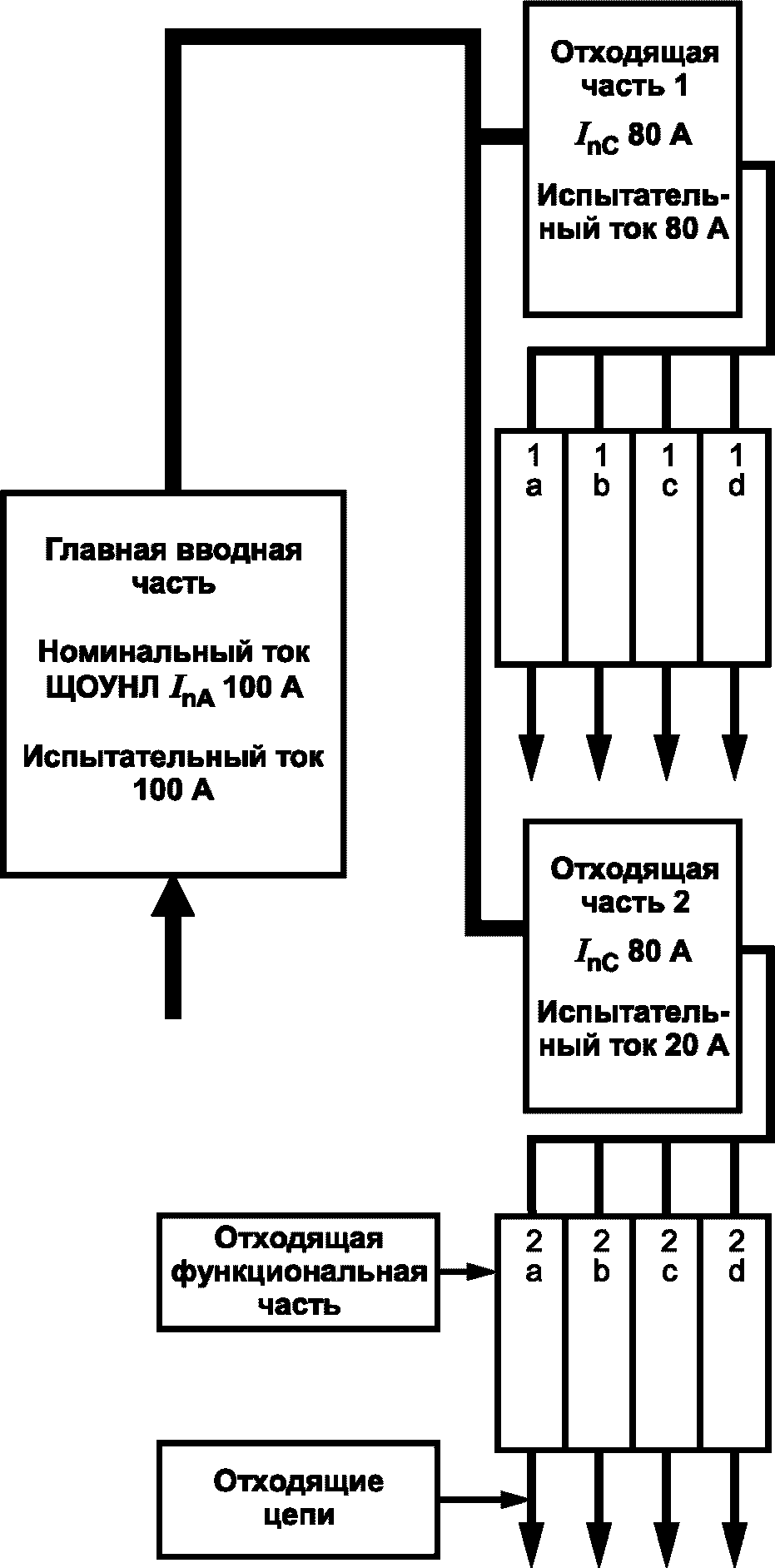 - номинальный ток отходящих цепей щитка Inc не превышает 125 А и номинальный ток щитка InA не превышает 250 А;