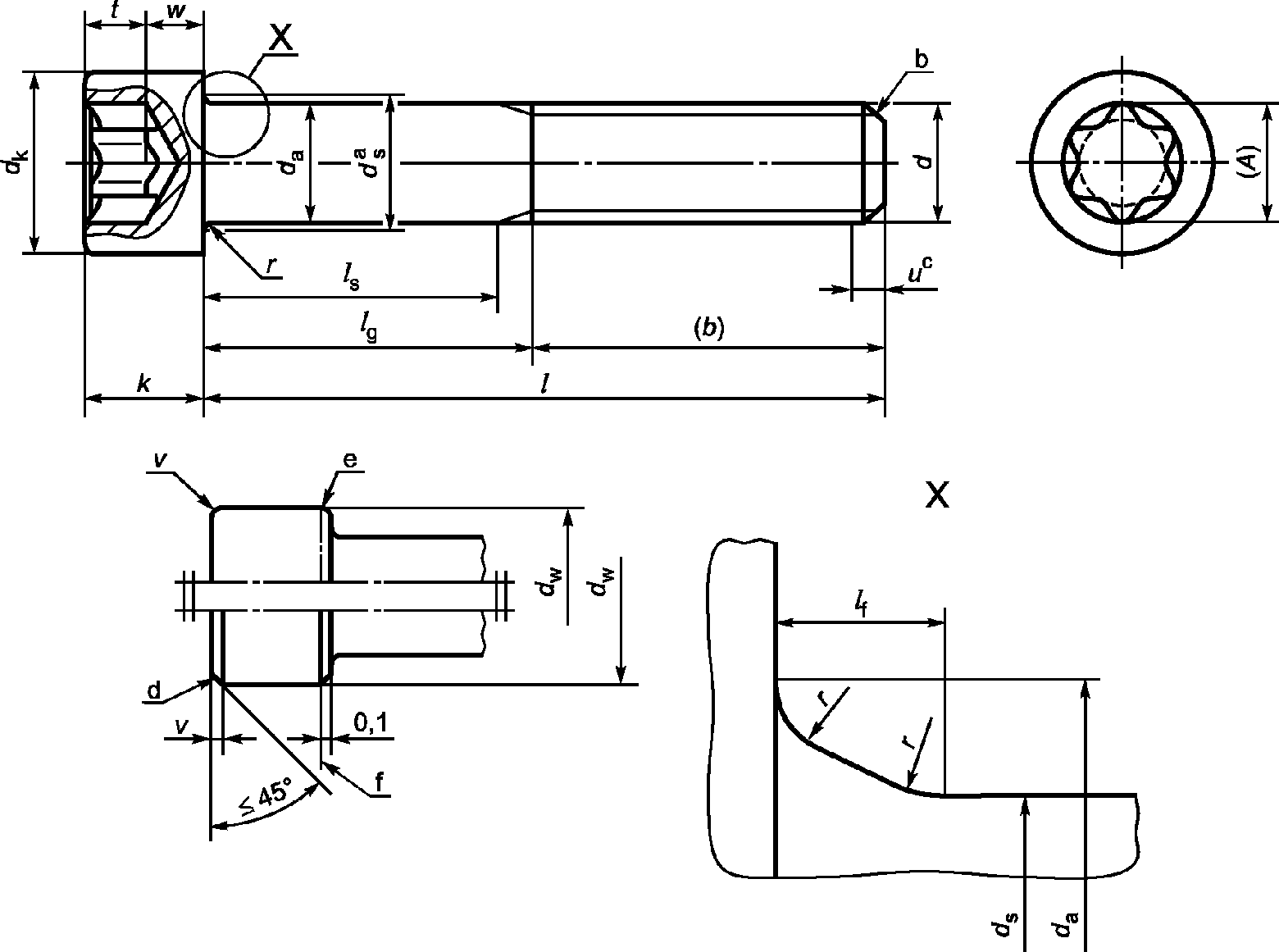 Звездообразное углубление | Обозначение стандарта | ISO 10664 |